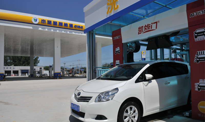 北京房山中國(guó)國(guó)際能源加油站,安裝凱旋門(mén)AT-7117AH隧道式洗車(chē)機(jī)